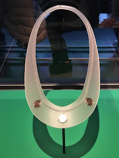 I find the ways in which femininity was performed and subverted by the Suffragettes really fascinating; I touched on the difficult relationship between femininity and feminism in a previous post about my love of vintage fashion. The jewellery in the Museum of London’s Votes for Women exhibition is an interesting microcosm of this. The medal awarded to Emmeline Pankhurst was in the style of military honours awarded to men, so this would have made a striking addition to a genteel outfit. The necklace awarded to Kitty Willoughby Marshall was a simpler design, featuring three coins on a delicate chain, and Louise Eates was awarded a beautiful Art Deco pendant. I love the thought that these were specially chosen to reflect the personal styles of these women, and to thank them for their unique contribution to the cause.
